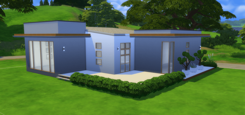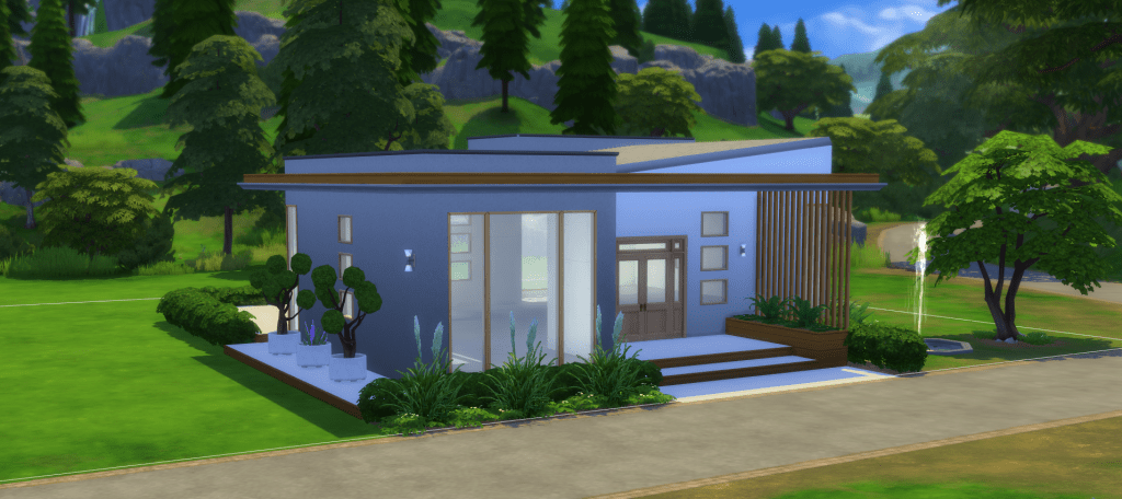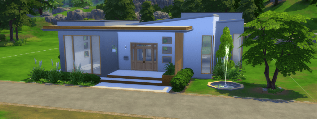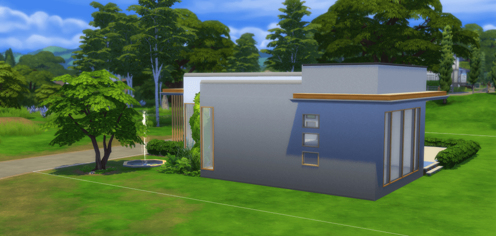 It is the only game (PC) that I play, although playing isn’t really the proper word to be used. Because I don’t play any of the suggested scenarios, or come up with my own stories. In other words, the game play doesn’t interest me. What I enjoy about the Sims 4 is, that you can build homes and design yards and gardens for your sims to live in. You can also (re-) build the entire worlds, if you so choose to, including public buildings like a library, a restaurant, a school, etc. Below, I will share a few pictures of the house I am currently building. It is only a shell (meaning, that it doesn’t have a floorplan or furnishings yet). The garden is not done either, because it would still take at least a couple of hours to finish it all. My houses are pretty basic in comparison to other Sims 4 player’s builds, their work is amazing! But true is also, that it doesn’t really matter, as long as I have fun. And that’s the case for sure.
